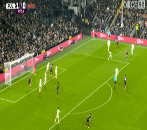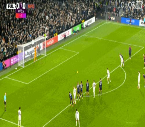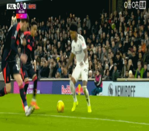 第45+5分钟,凯文造点,希门尼斯主罚点球命中,富勒姆1-0诺丁汉森林