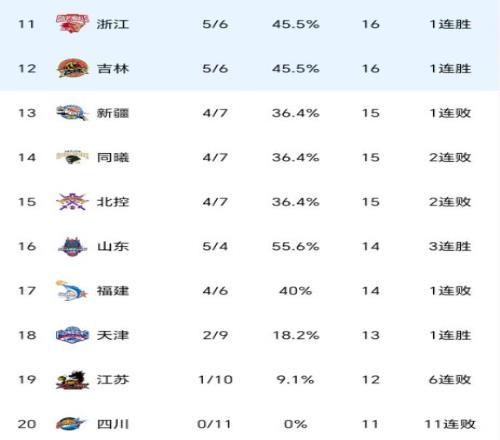 CBA狂欢夜!北京追平广厦广东辽宁大胜升第8前总冠军11连败垫底