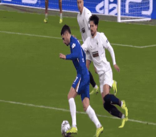 第51分钟,恩佐将球分到边路,刚刚登场的埃斯特旺不停球直接射门,门将注意力集中,封住近角。