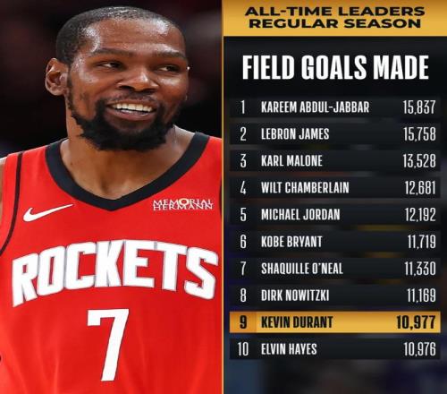 凭借这样的表现,杜兰特NBA生涯投篮命中数超越埃尔文-海耶斯升至历史第9名,接下来将追求第8名的诺维茨基。
