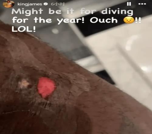 对阵掘金一战,41岁的勒布朗复刻了罗德曼的飞身扑球,那个动作令人泪目,老头子为了胜利付出一切,一大早他在个人IG上晒出了膝盖上的伤口,飞扑五米多磨出了一个很大的伤疤,但老头没有缺席对阵火箭的卡位战。